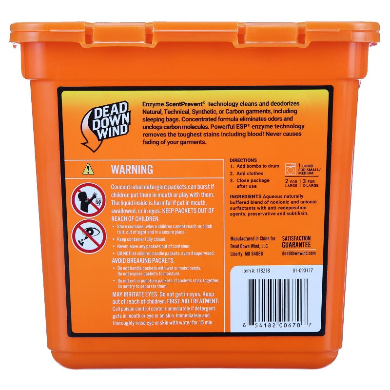 - The Dead Down Wind Laundry Bombs eliminate odors with a broad-spectrum odor elimination formula that removes all traces of human scent on hunting gear, hunting accessories.