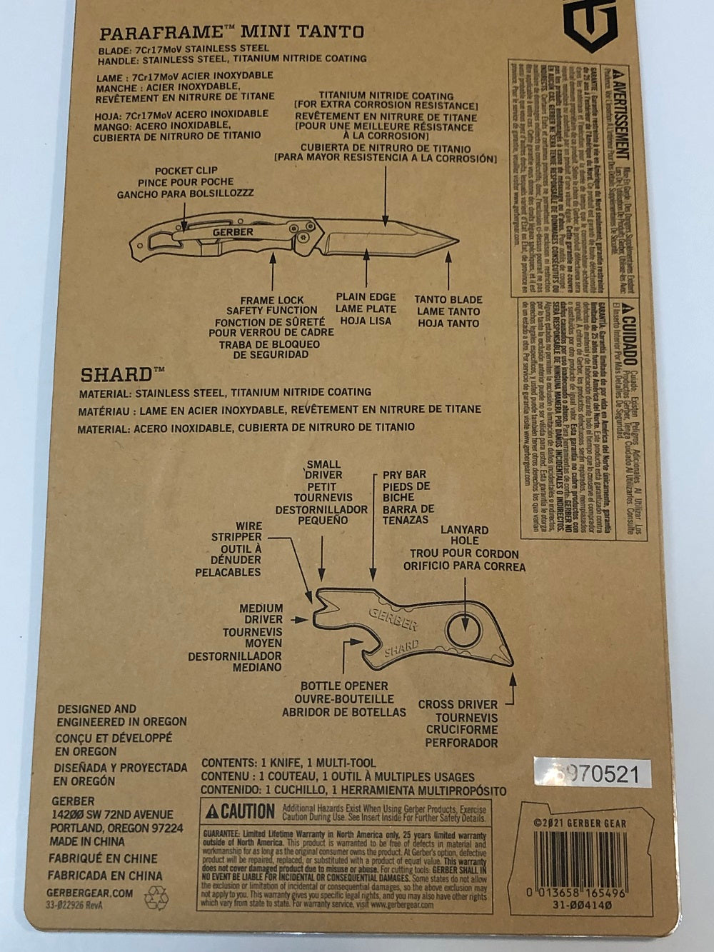 Gerber Paraframe Mini Tanto Knife w/Shard