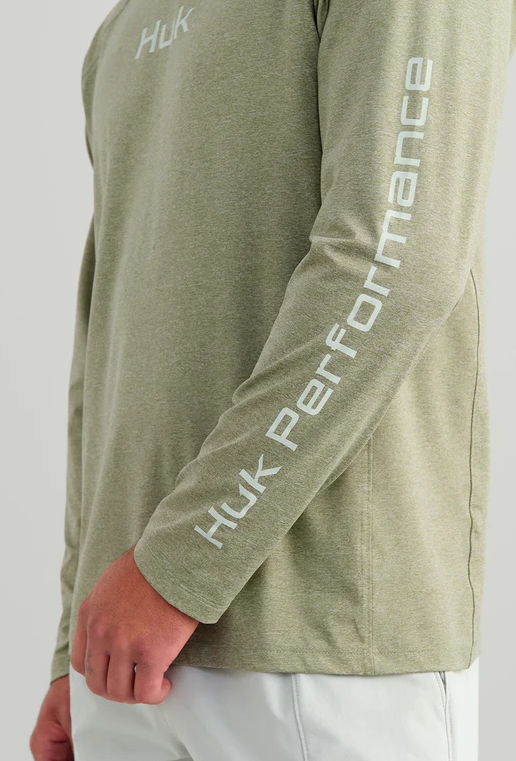HUK Men's Airweight LS Hoodie Seagrass Heather